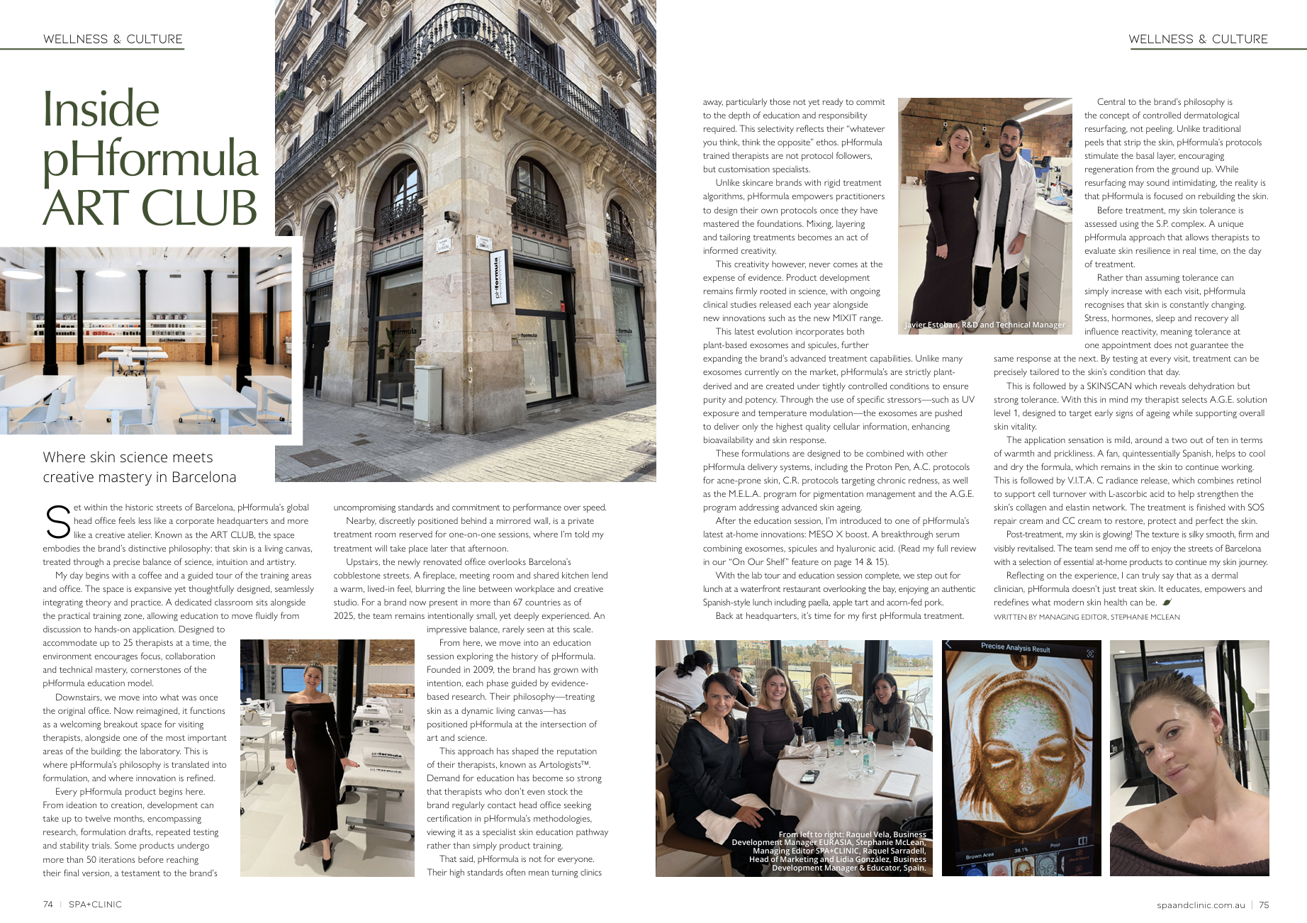 You may have also seen the recent feature on the pHformula website and in SPA+CLINIC magazine, where Editor in Chief, Stephanie McLean, visited the ART CLUB in Barcelona late last year. Her experience offers a wonderful insight into what awaits — a space described as “less like a corporate headquarters and more like a creative atelier”, where science, intuition and artistry come together to treat the skin as a living canvas.